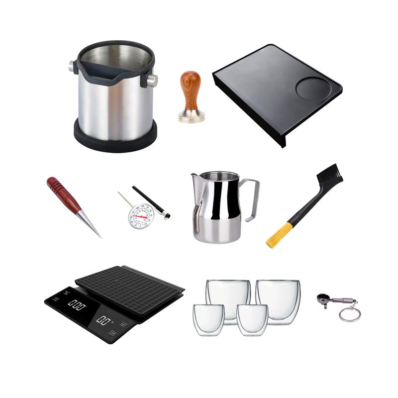 Encuentra todos los accesorios necesarios para la preparación profesional del café espresso.